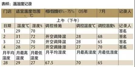 调控措施后应将调控到适宜范围内温湿度数据重新填写。